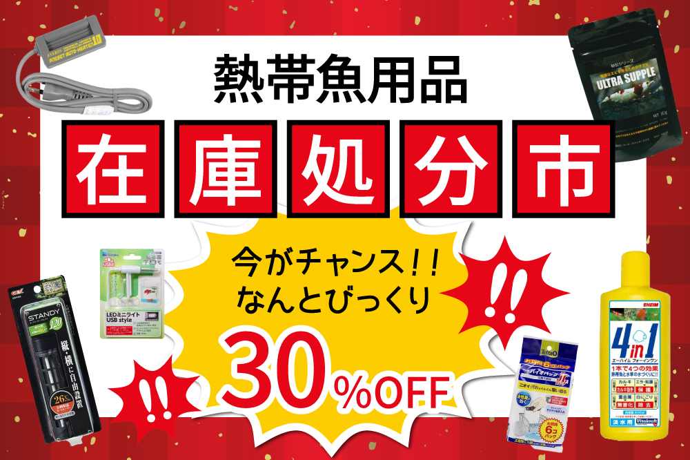 ③熱帯魚用品の在庫処分市は、在庫を処分したいというアクアリウム様の意向を考慮し、サイトに訪れた際に目に入るよう、キャッチの部分を赤、四角の中に文字を入れることで、より視覚的に内容が入ってくると思い、制作させていただきました。