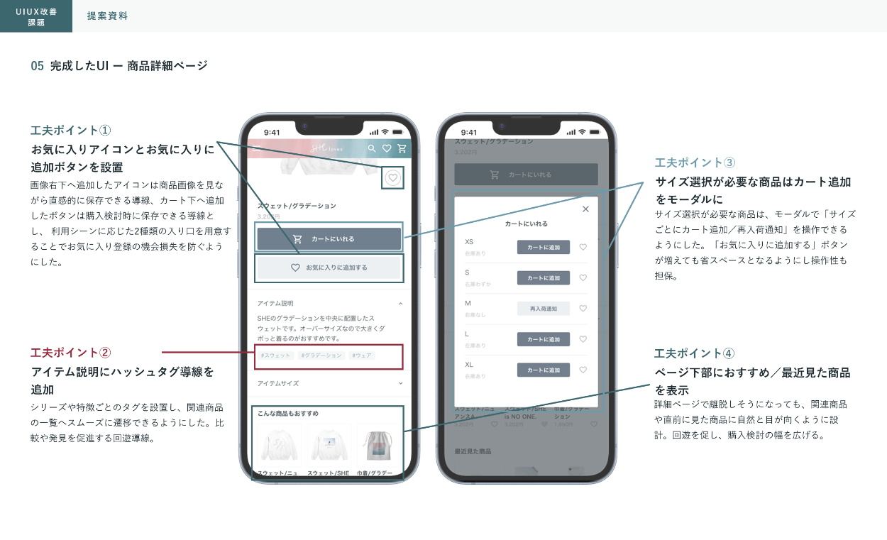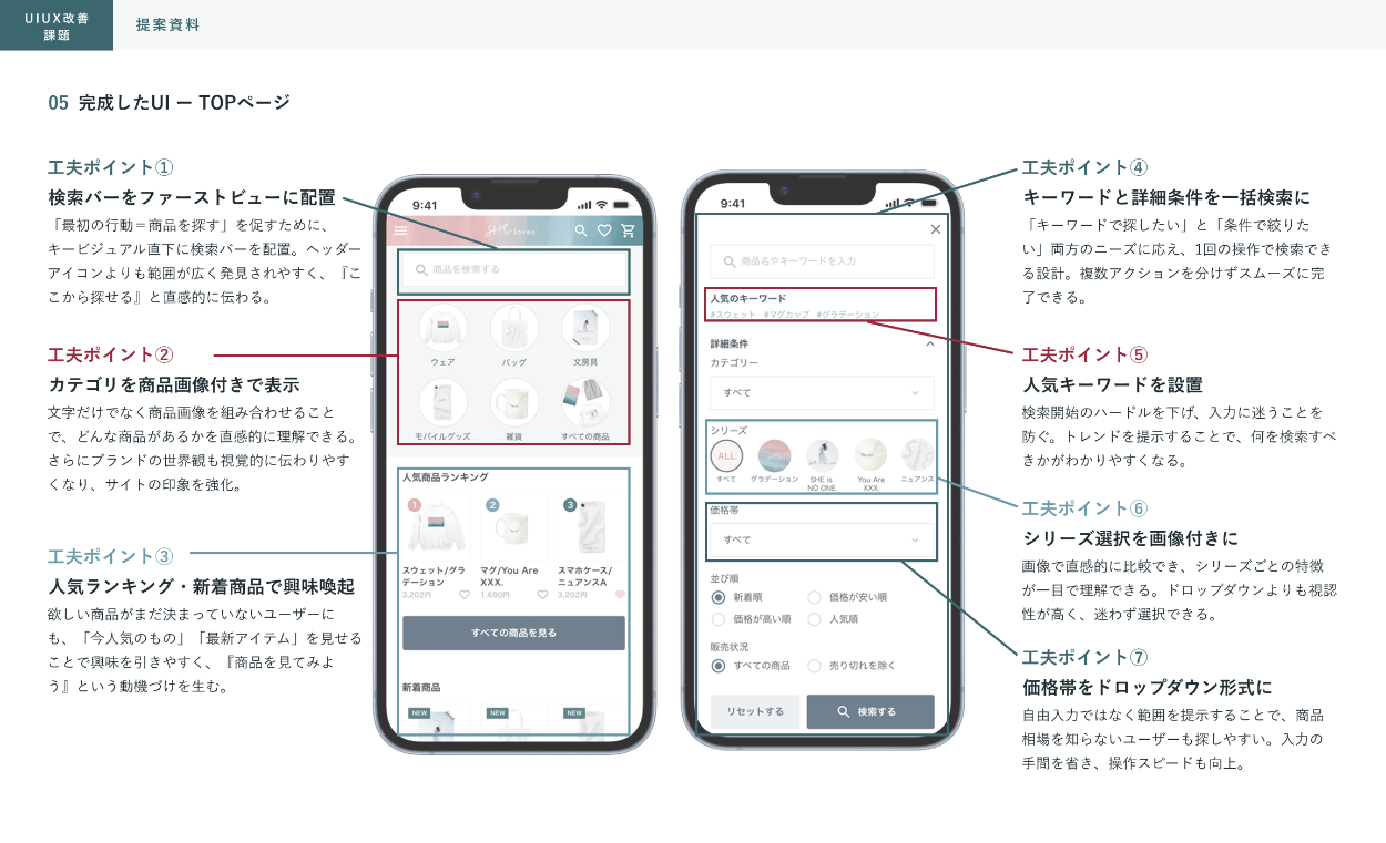 - 根拠の言語化⋯提案資料作成時は、それぞれの画面に対して「なぜこのUIにしたのか」を言語化することに力を入れた