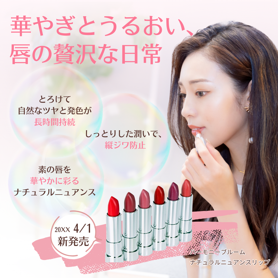 【架空案件】新発売リップクリームの広告バナー chika 駆け出しWebデザイナー OVERVIEW WebデザインスクールHerTech様の課題で作成しました。新発売リップクリームの宣伝バナー です。 YEAR 2024
