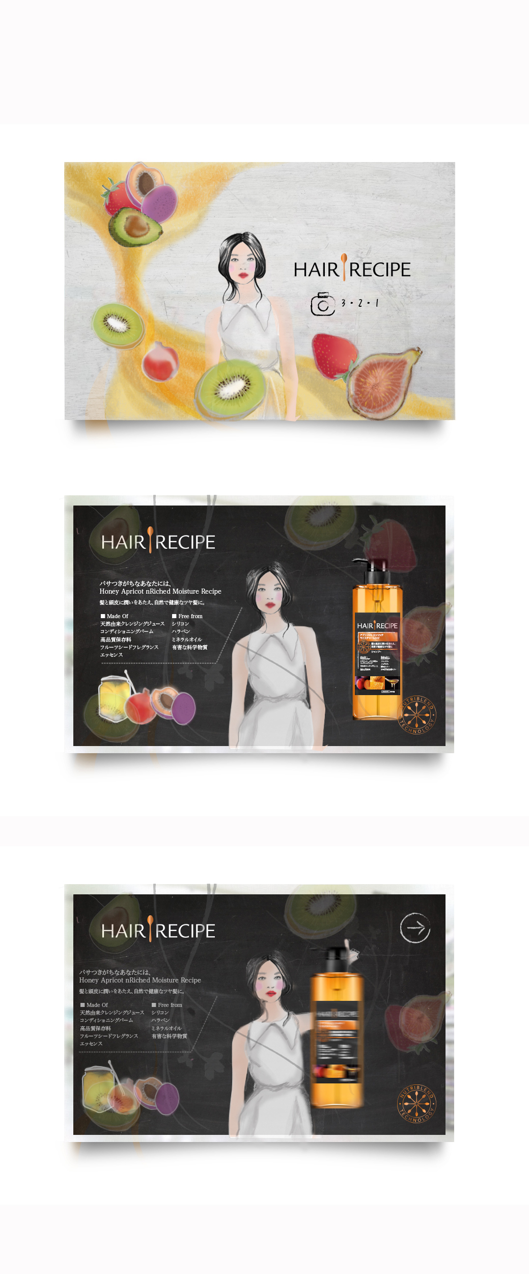 Hair Recipe サイト動画イメージ制作 Ayako Goto Freelance Web Designer OVERVIEW Hair Recipeのプロモーションの一部の動画イメージのイラストレーションを制作。