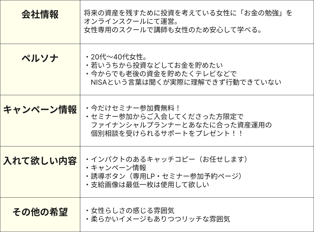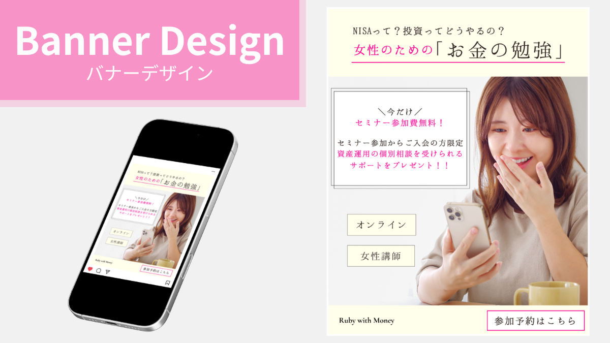 はじめてマネーセミナーに参加する方にも安心してもらえるよう、全体として信頼感と親しみやすさのバランスを大切にしています。