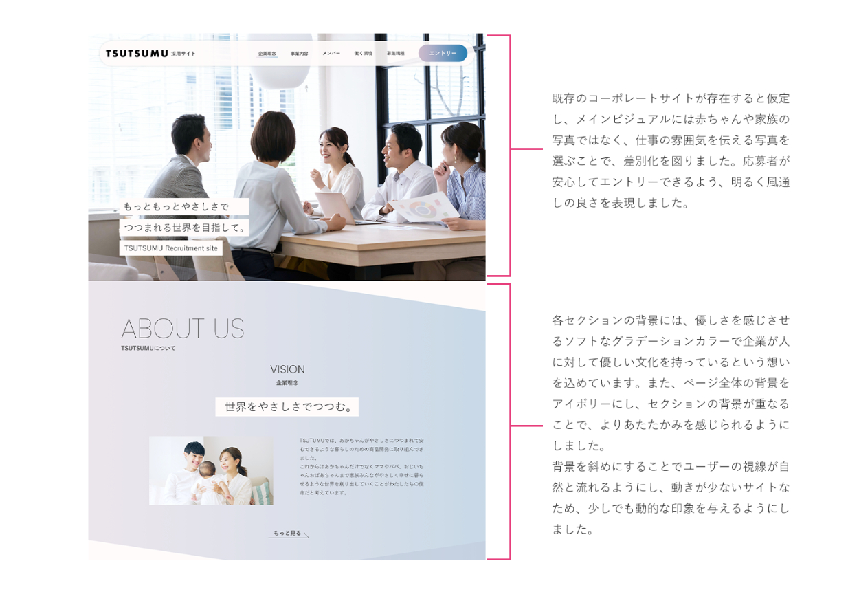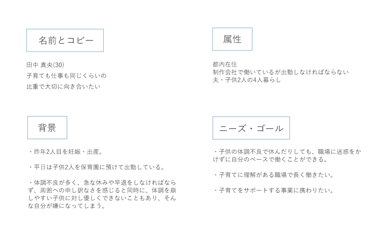 どのようなターゲットに向けて、どのように課題を解決する必要があるのか、情報設計しました。