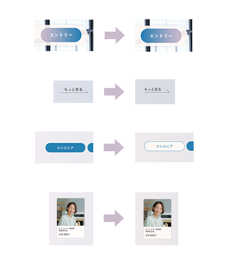 エントリーボタンのホバーで動きをつける際に、単色の反転だと:hoverで簡単に動きをつけることができましたが、グラデーションの反転では::beforeと::afterでそれぞれのグラデーションを重ねてz-indexで重なりを動かす必要があると学びました。