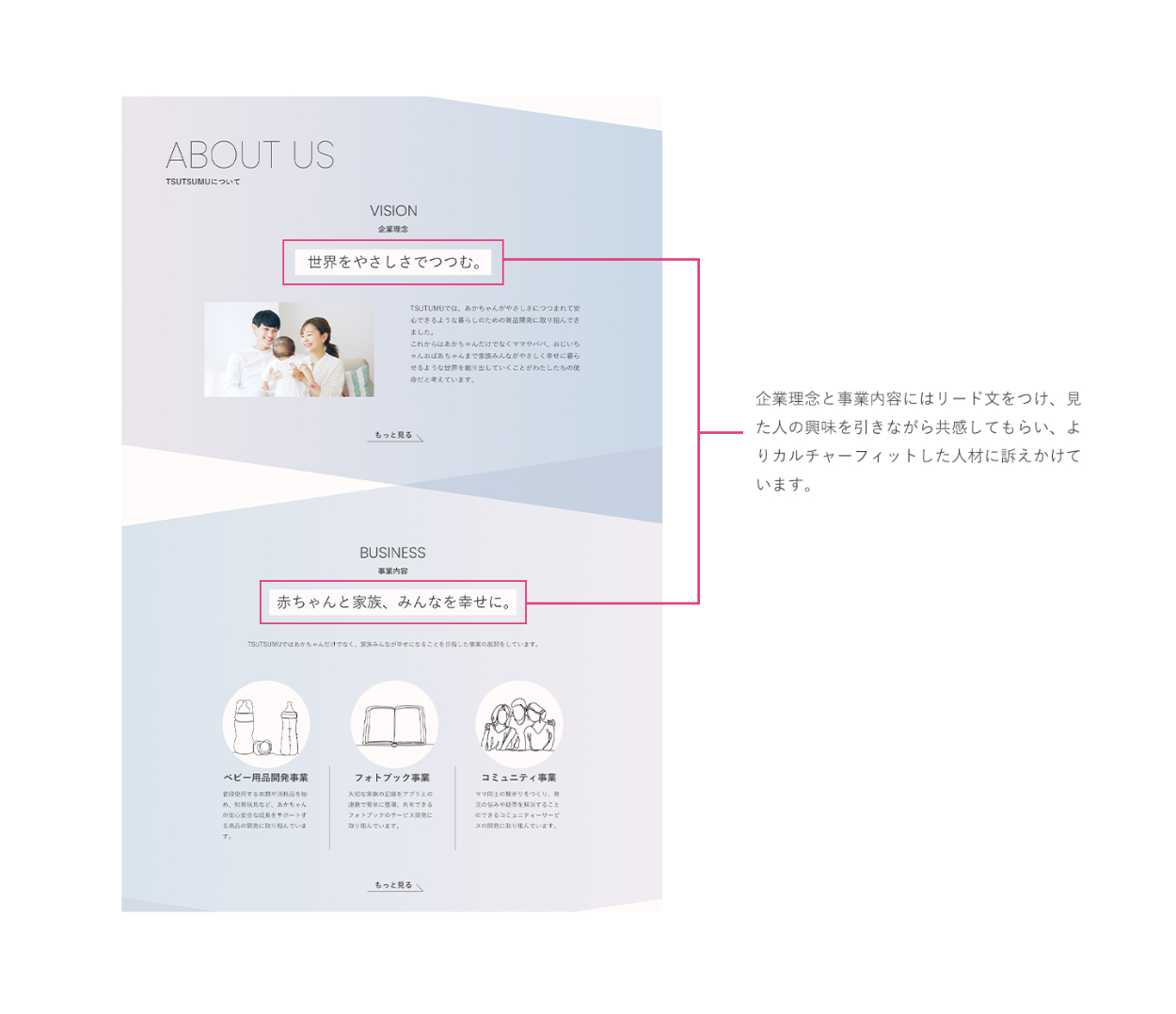 ベビー用品をメインとし、ママの育児をサポートするコミュニティ事業や家族みんなが幸せになるフォトブック事業などを展開している。軸はベビー用品だが、今後ママ・パパ、家族向けのサービスも展開していく予定。