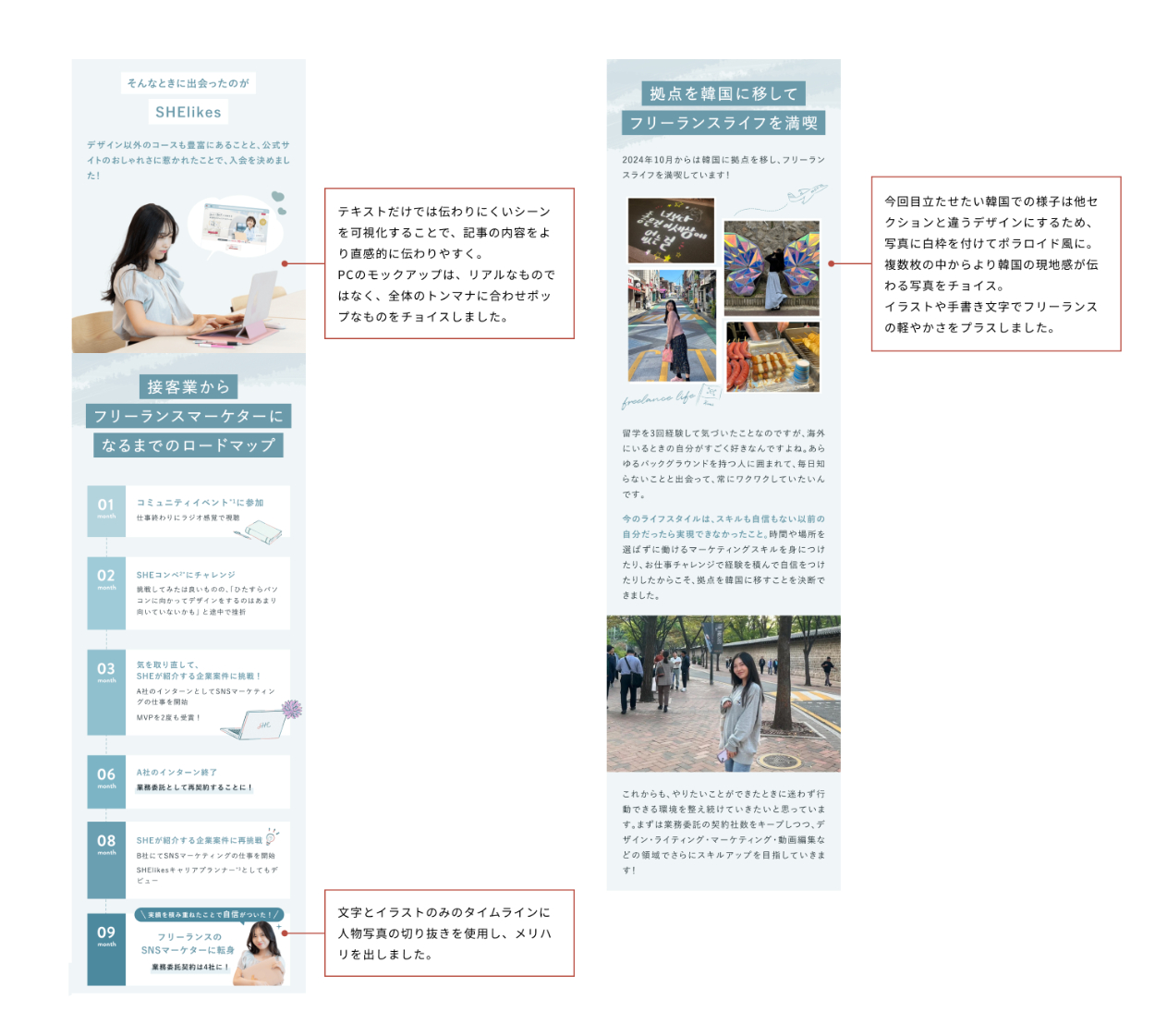 【実案件】SHE株式会社 SHEshares サムネイル・LPデザイン misaki デザイナー OVERVIEW SHE株式会社のオウンドメディア「SHEshares」に掲載されるサムネイル、記事デザイン、SNSバナーを制作しました。(約1週間) YEAR 2024 【目次】①制作物②工夫点---------------- ----- ①制作物実際の記事はこちらからデザインした他記事はこちらから②工夫点 WEBSITE
