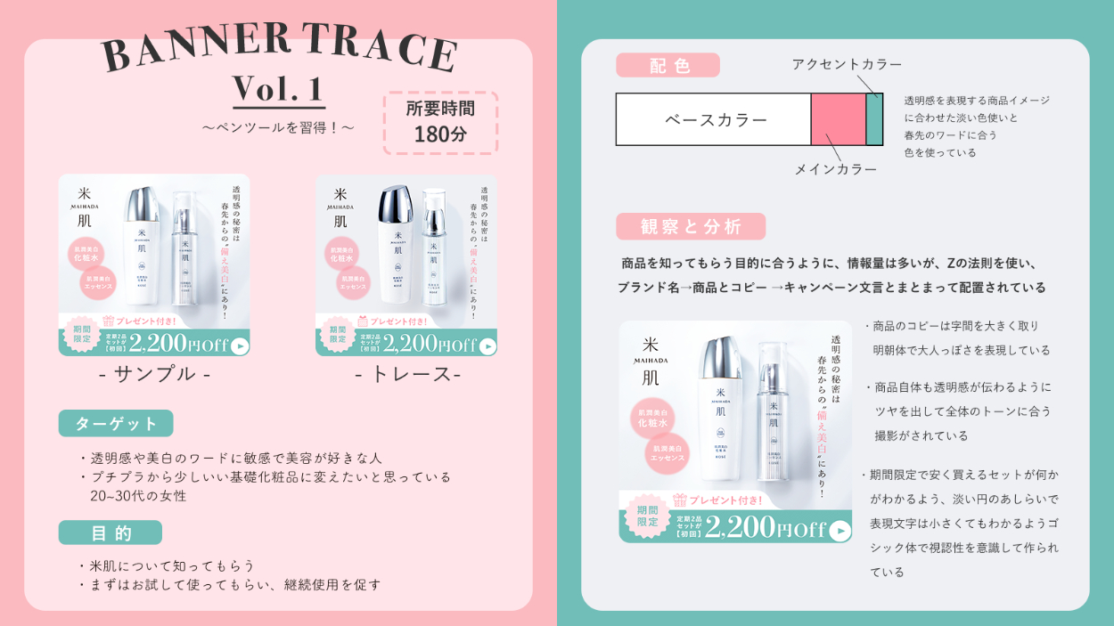 ・既存のバナーをトレースし、効率よくデザインツールの使い方を習得するため