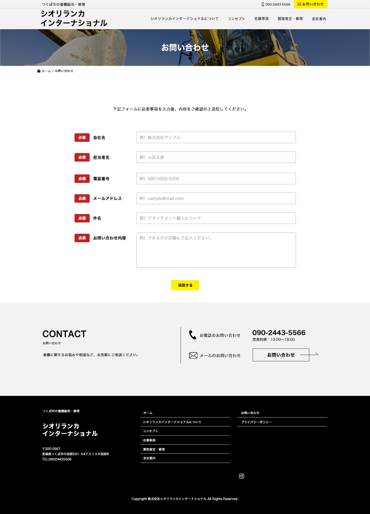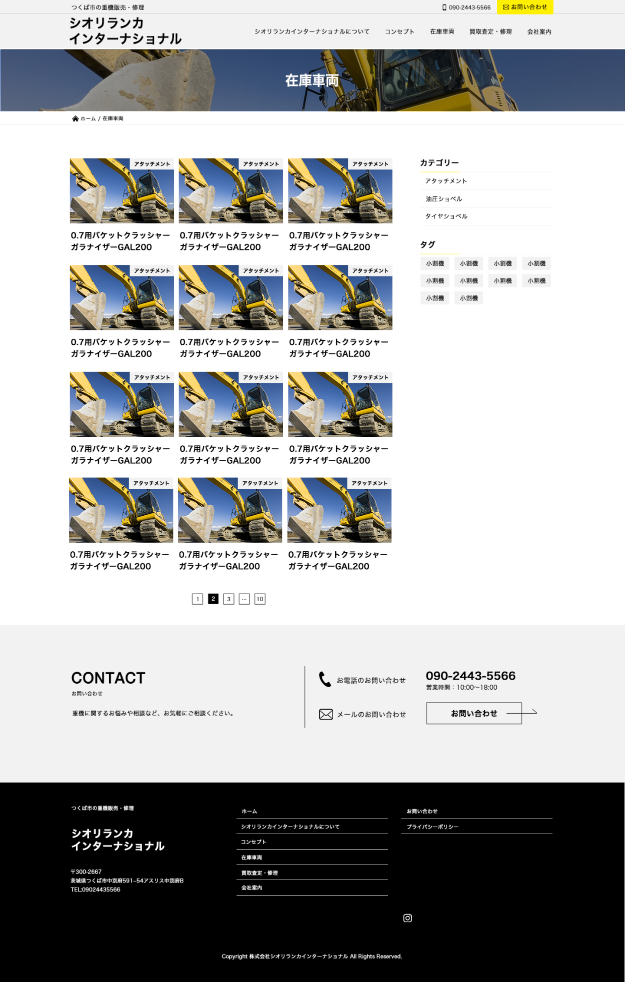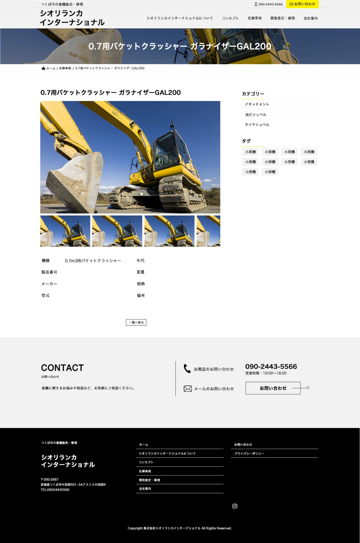 重機販売のための商品紹介とお問合せが可能なサイトを制作すること