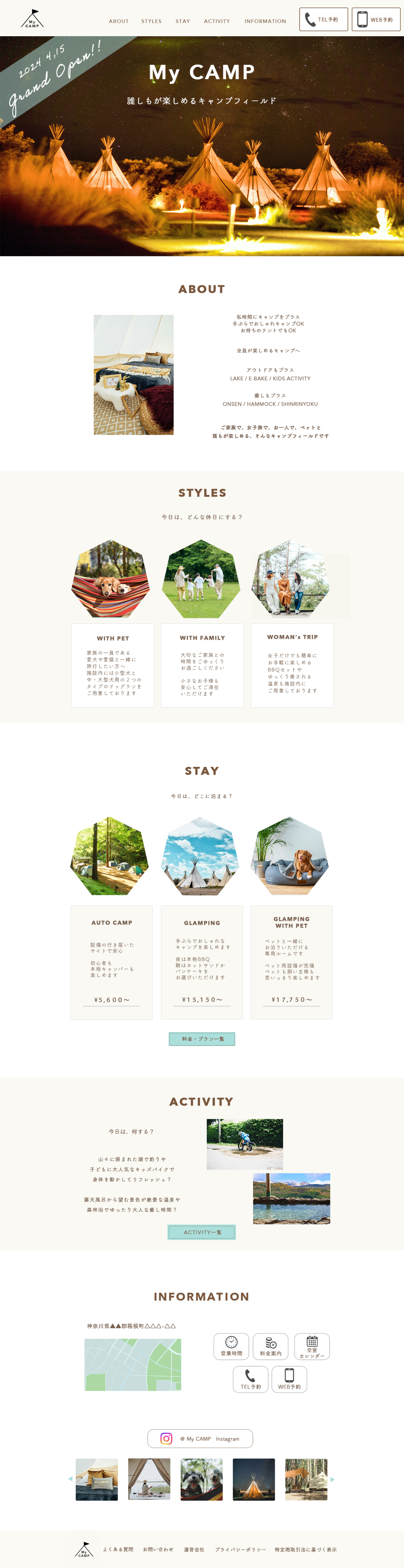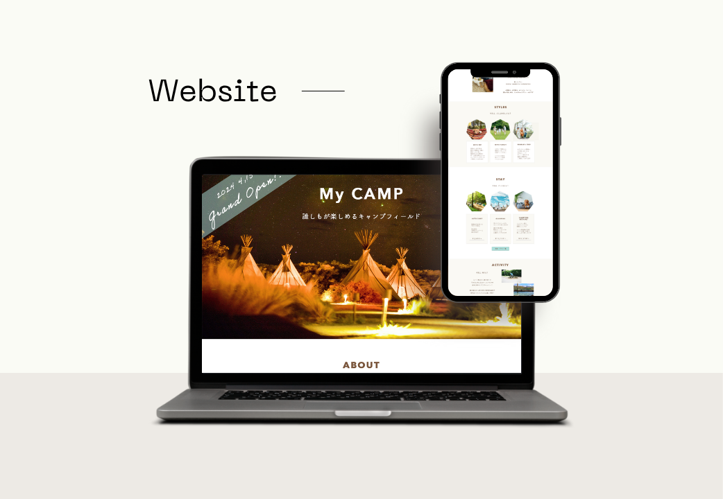 自主制作|キャンプ場HP デザインカンプ SATO MAI 伝わる、ときめく、デザイン OVERVIEW 初心者でも本格キャンパーでも誰でも楽しめるキャンプ場の架空HPサイトを作成しました ◯ツールPhotoshop◯ターゲット30〜40代既婚女性ペットや子どももいるため中々キャンプやアウトドアが行けないと悩んでいた方