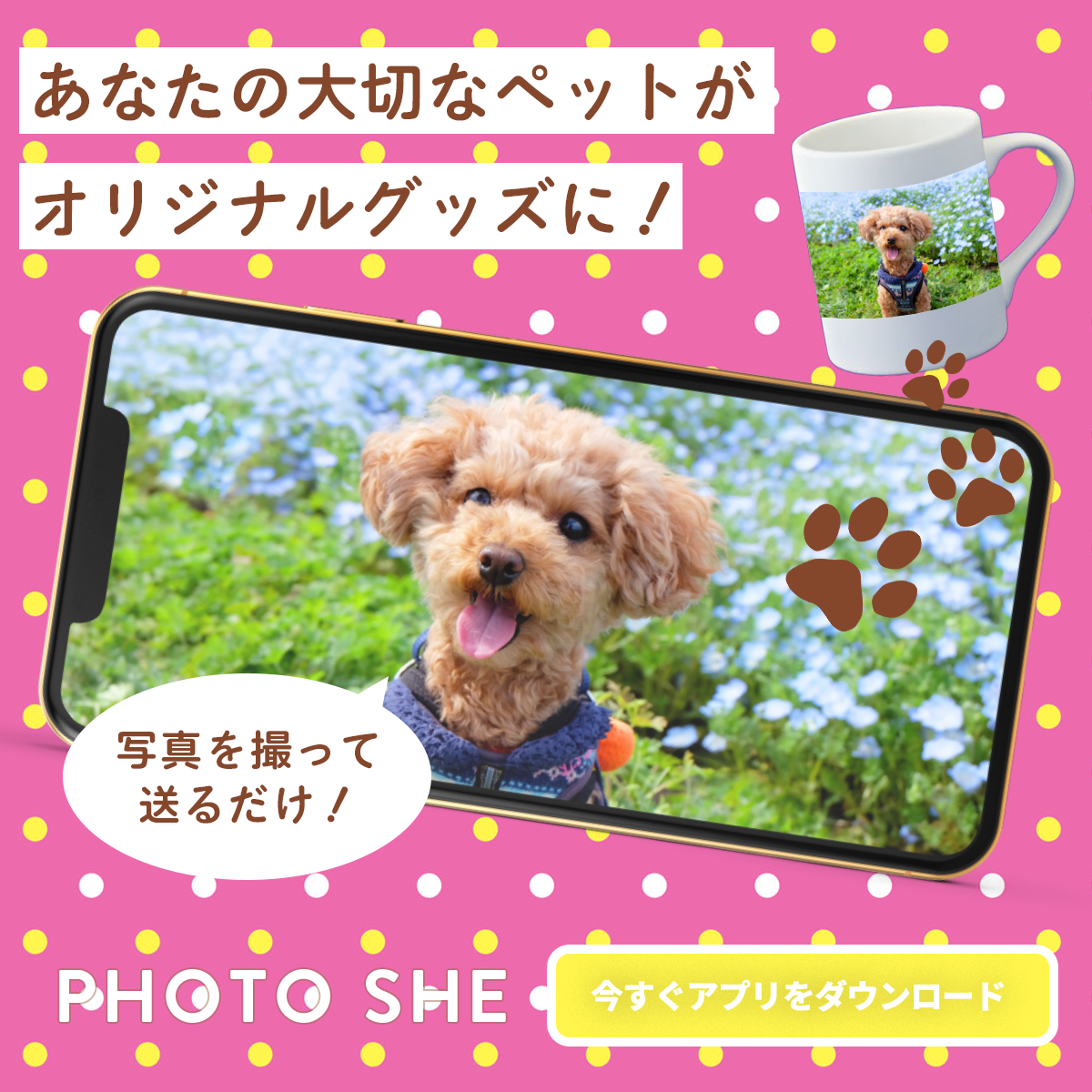 <画像など>①ペット画像 ②ペット感のあるイラスト ③PHOTO SHEロゴ