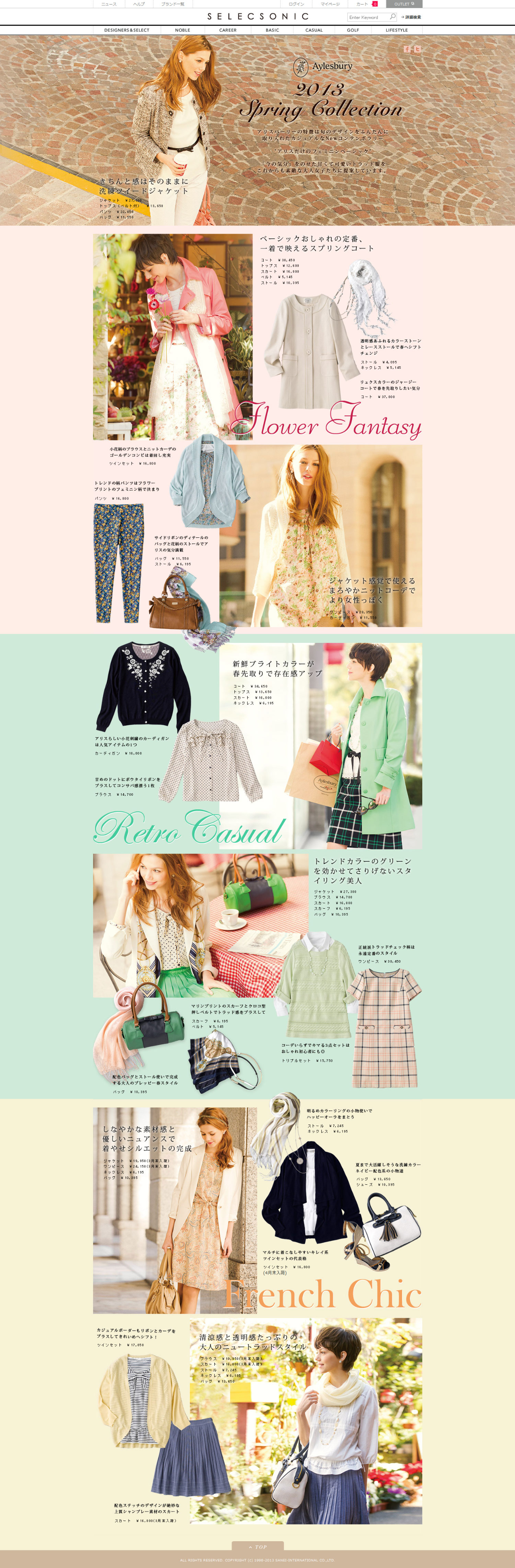 春の新作特集ページということで、色をパステルトーンに統一し、明るい雰囲気のデザインに致しました。