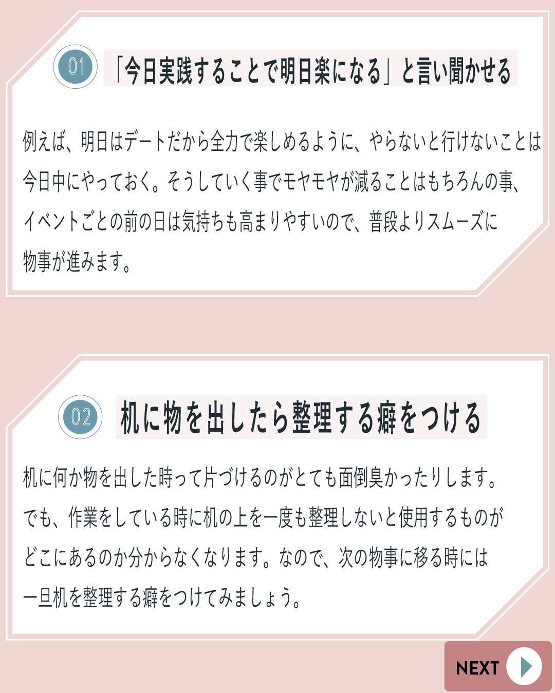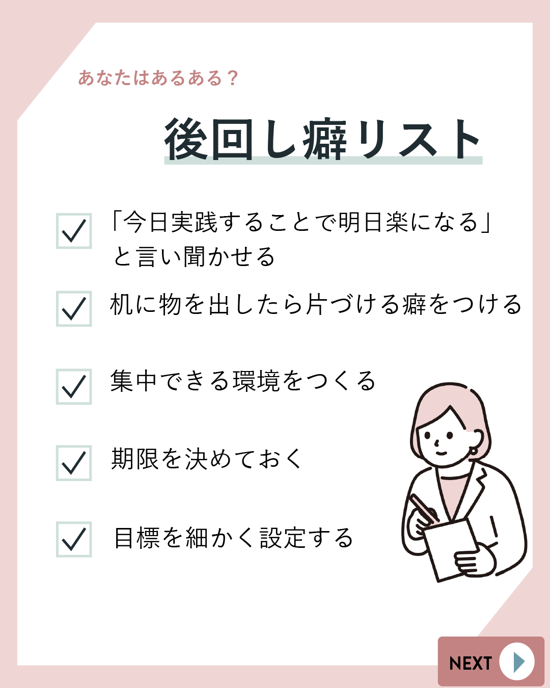 テーマは「ちょっとした工夫で後回し癖が治る方法」。
