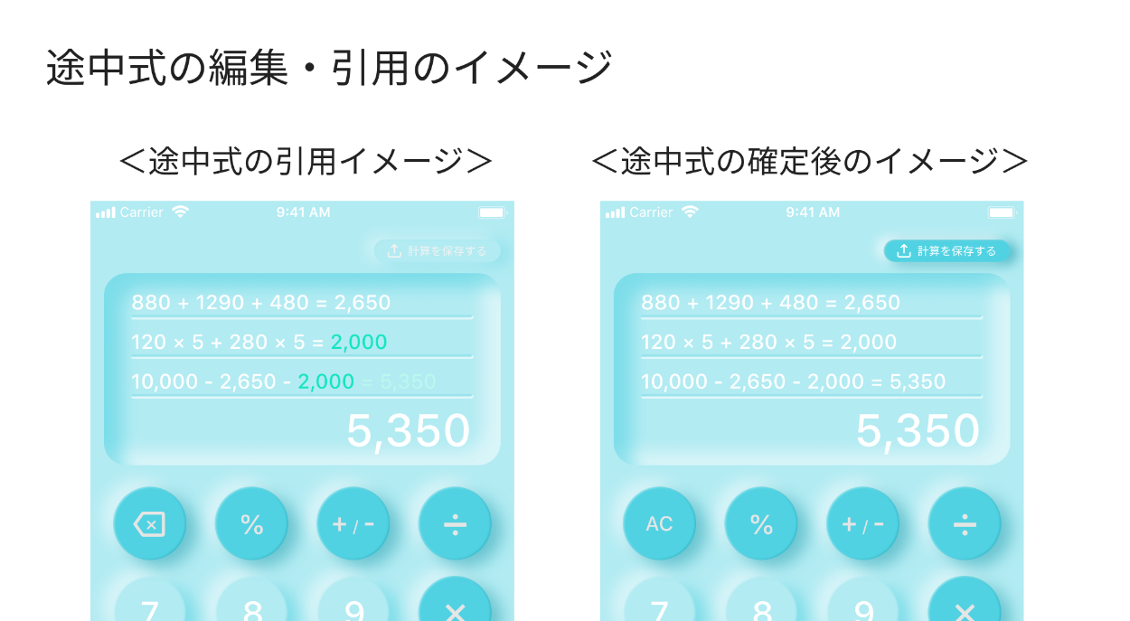 3、計算式を途中で編集、計算結果の引用をできる仕様にしました。