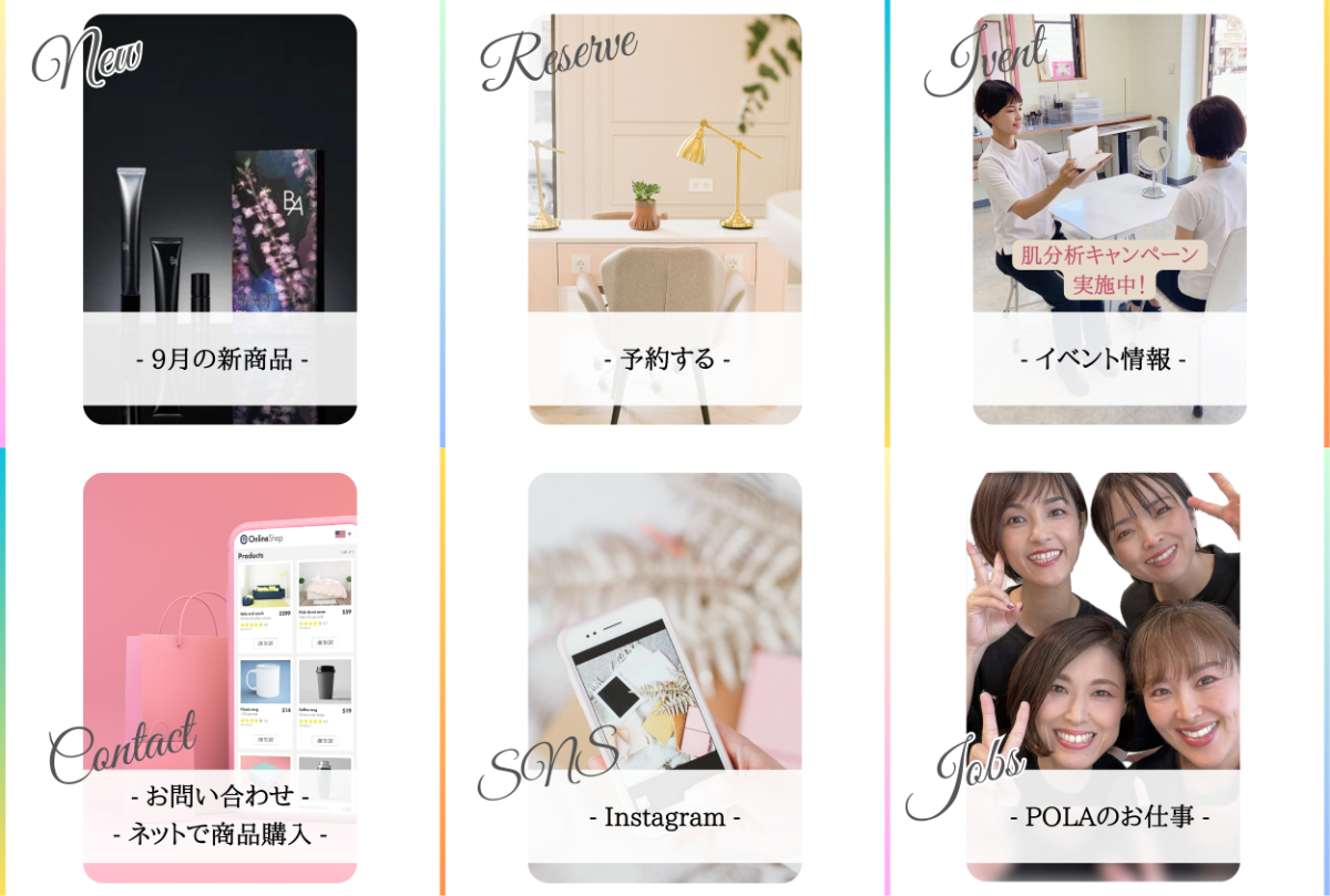 ・サロンのカラーの出せる、イベントやリクルートの欄はリアルな写真とスタッフの