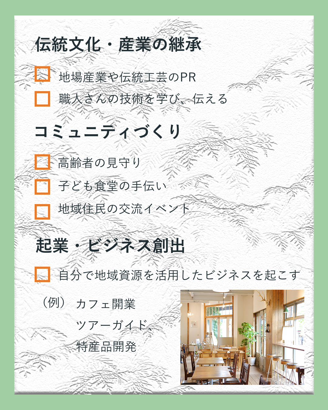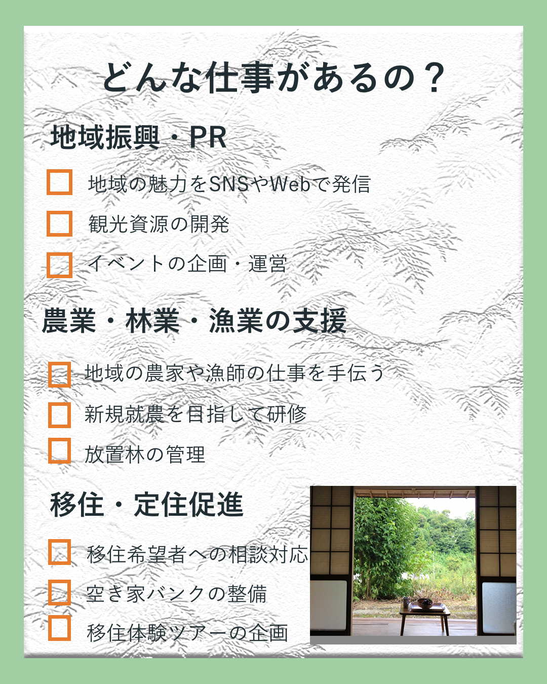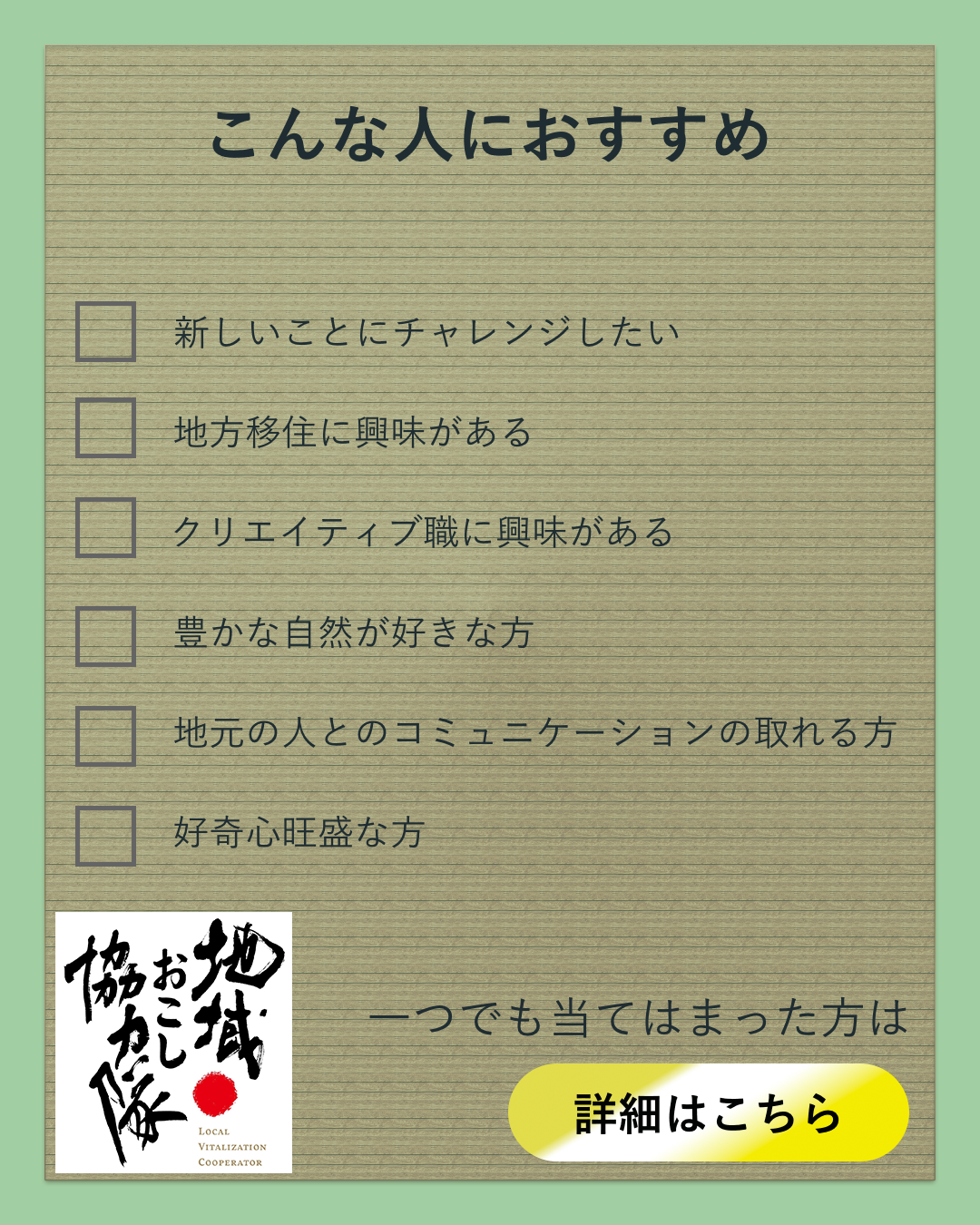 地域おこし協力隊ということもあり、自然を意識した緑を背景にしました。