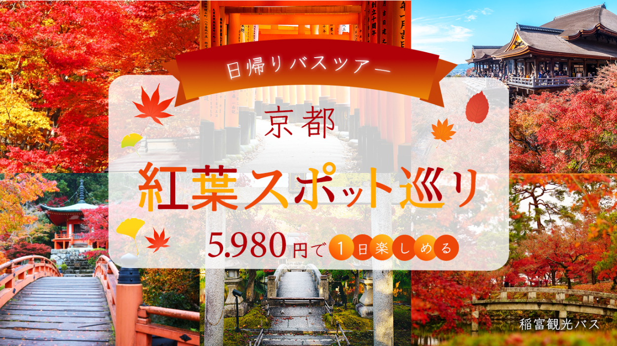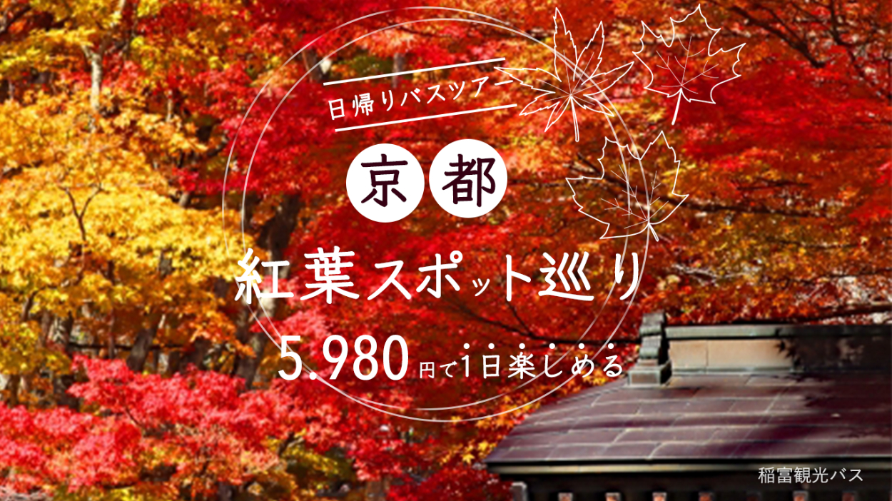 何のバナーなのか一目で分かるように「京都」「紅葉スポット巡り」を円の装飾の中央に配置しました。