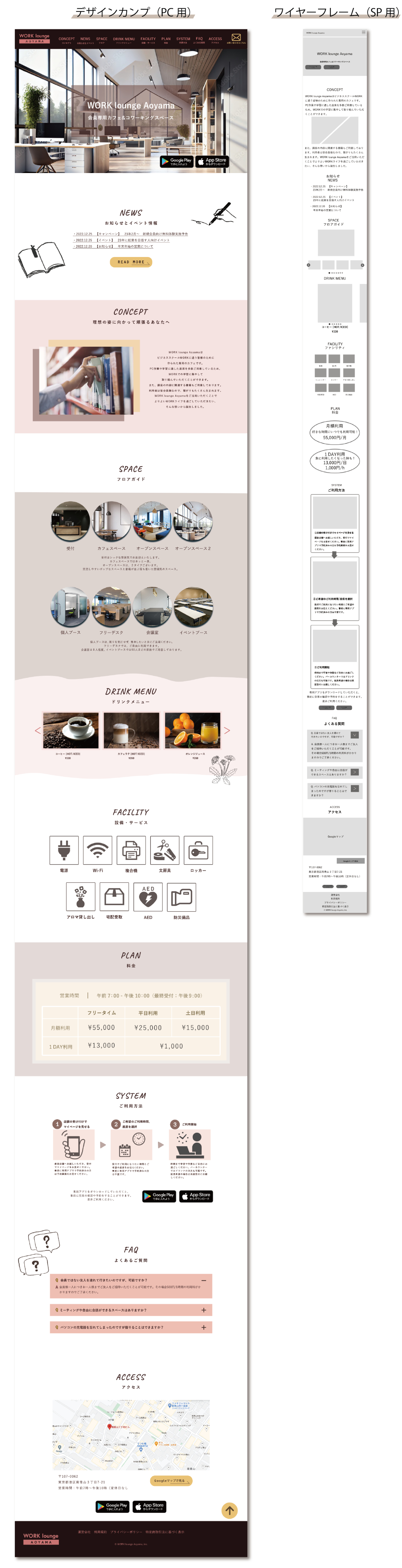 【課題】LP制作:コワーキングスペースのWFとデザインカンプ作成