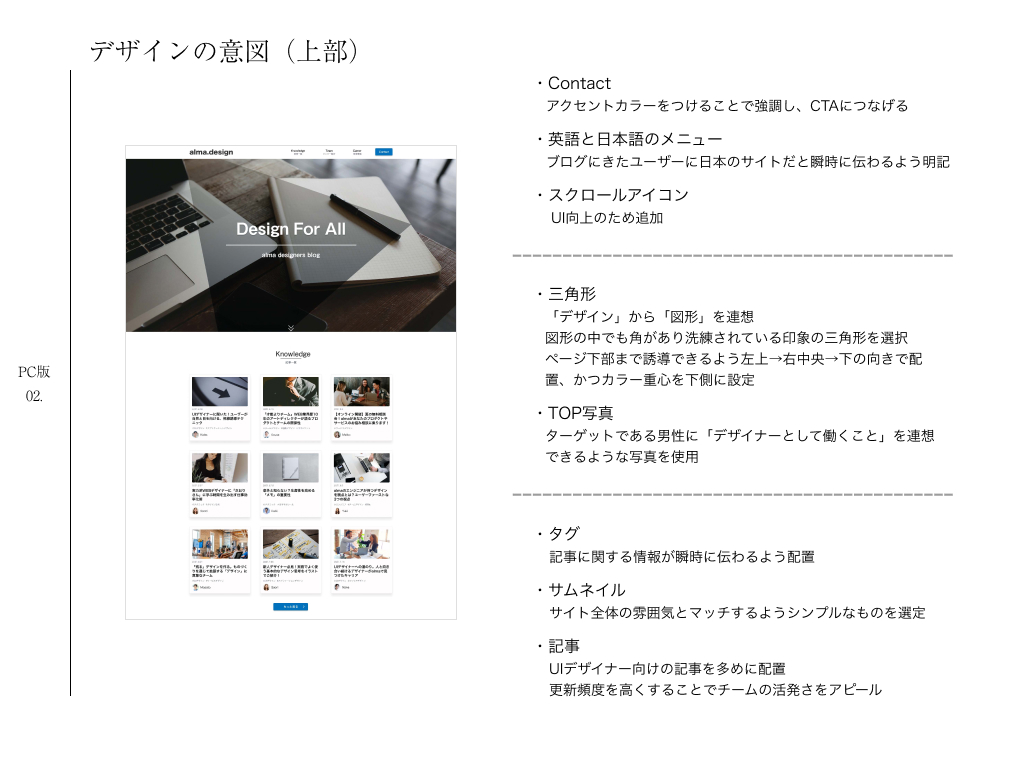 上記を意識しながらデザインを進めました。