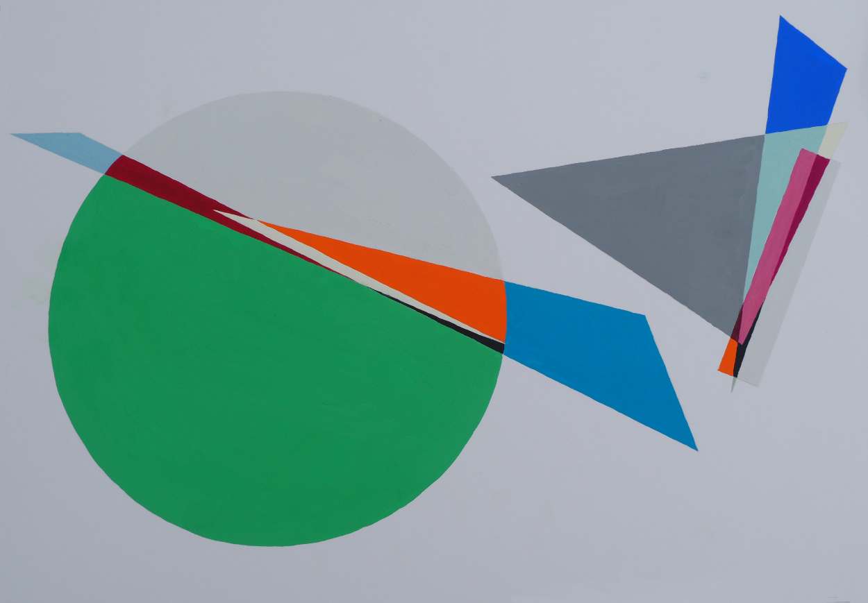 図形の配置や配色のバランスを考えながら制作した平面構成です。