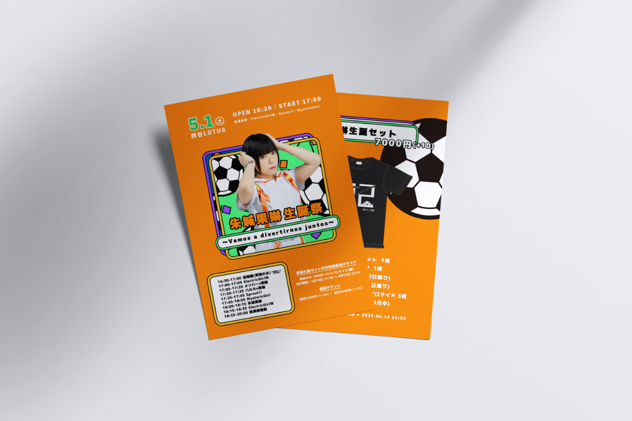 デビューしたばかりのエモ系アイドルユニット初のバースデーライブだった為、アーティスト写真を全面に使用し、タレントの顔と名前をアピールしたデザインにしました。