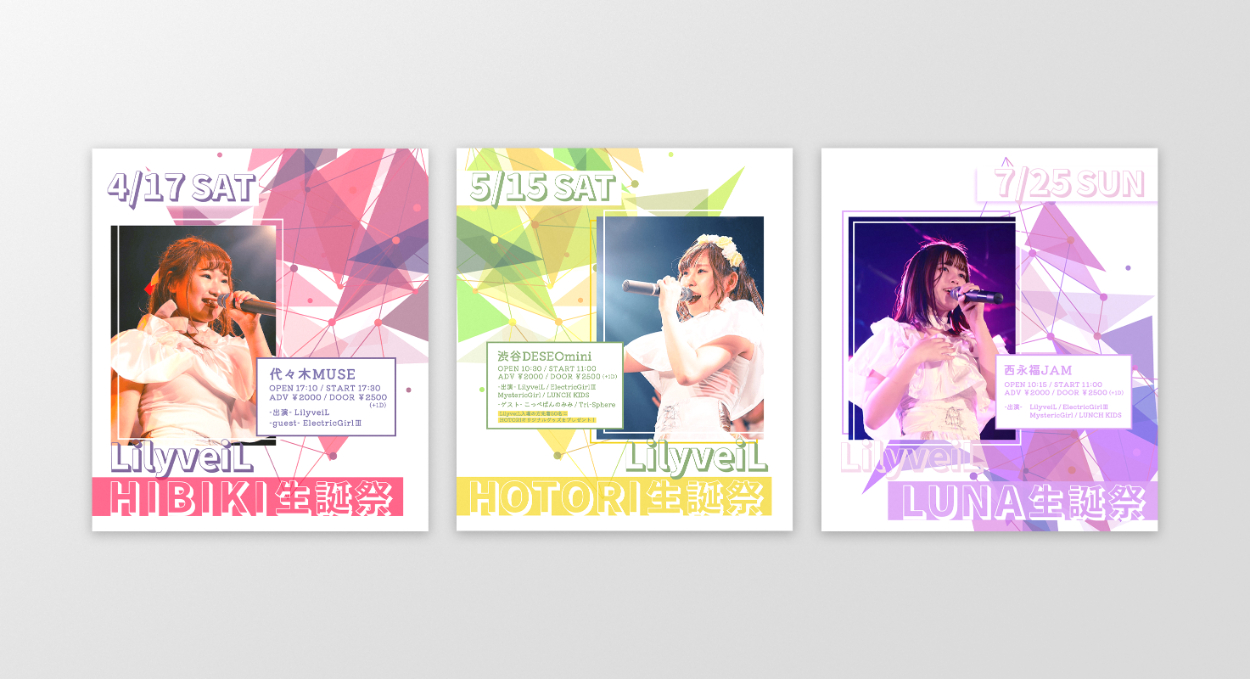 また、同ユニット内他メンバーのバースデーライブにも流用できるデザインにしました。