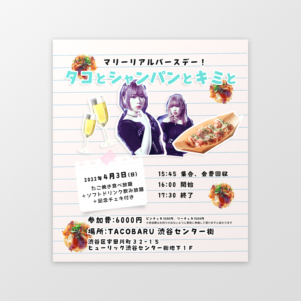 たこ焼き食べ放題の少人数でのイベントだったので、「たこ焼きパーティー」「ささやかなお祝い」のイメージを膨らませてデザインしました。