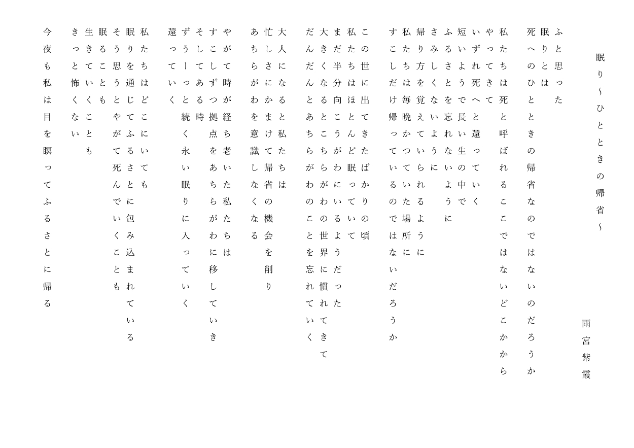 「眠り〜ひとときの帰省〜」が入選した。