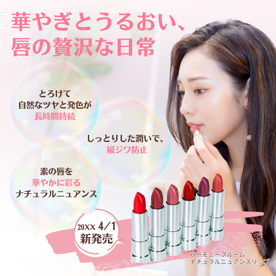 - キャッチコピーは”華やぎとうるおい、唇の贅沢な日常”です