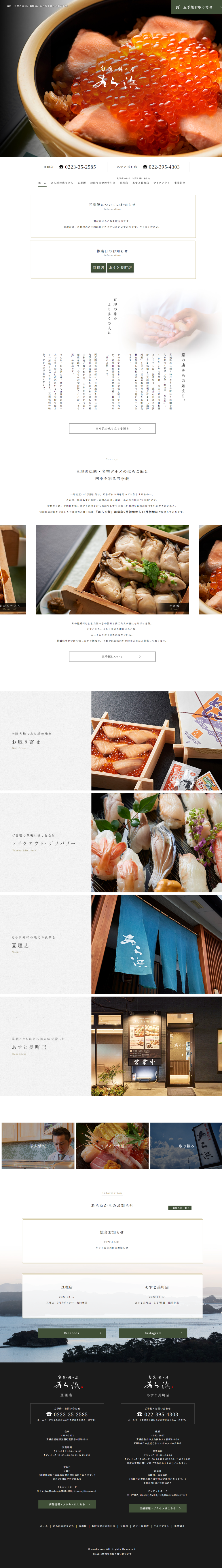 宮城県仙台市にある「あら浜」様のWEBサイトリニューアルとECサイト構築のディレクション、またメニューブックのディレクションを行いました。