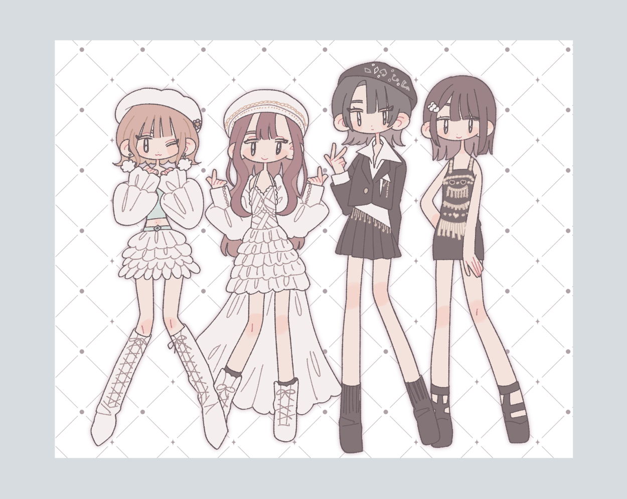 【自主制作】似顔絵イラスト Mayu.U 大学生 OVERVIEW 写真をもとに似顔絵イラストを制作しました。 YEAR 2023 複雑な構造の衣装を写真から読み取れる範囲でデフォルメし、顔などの情報量とのバランスを調整しました。シンプルなテイストでの作画になったため、顔のパーツ配置や造形にこだわり、ひと目で誰の似顔絵かわかるよう工夫しました。