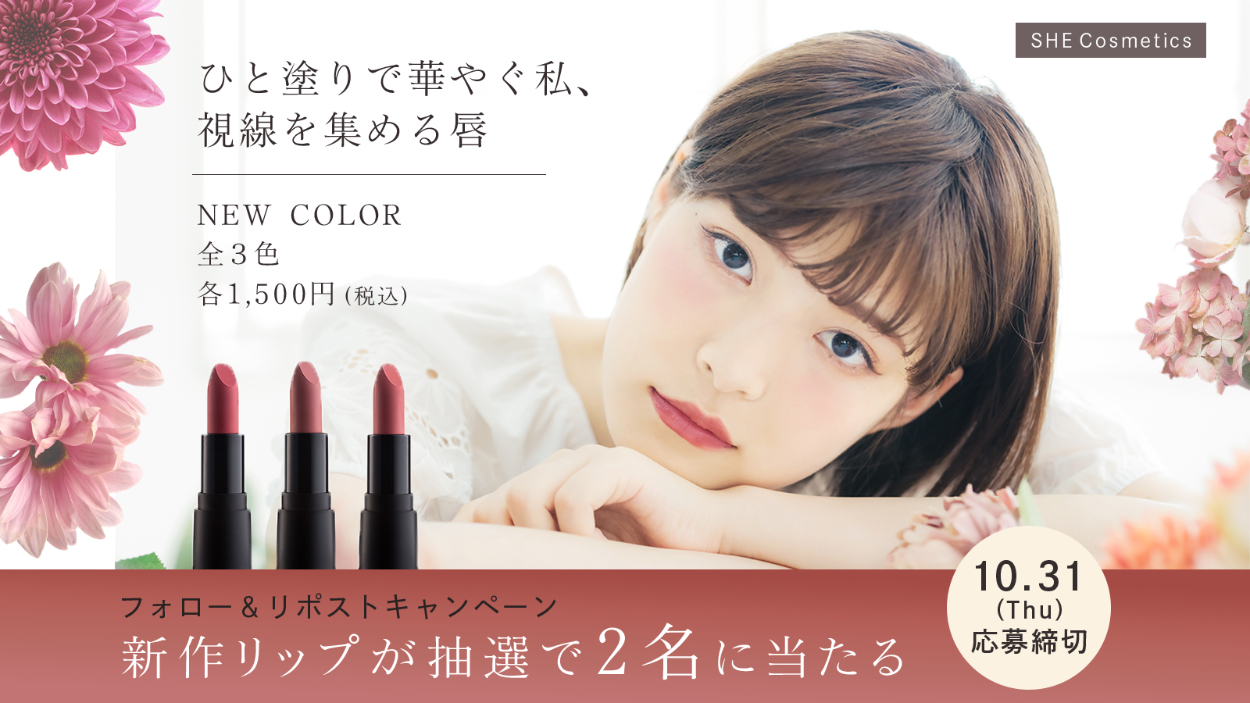 ・新作リップが抽選で2名に当たる(「新作リップ・抽選・2名 」がわかれば、当たる→プレゼント 等の表記変更も可)