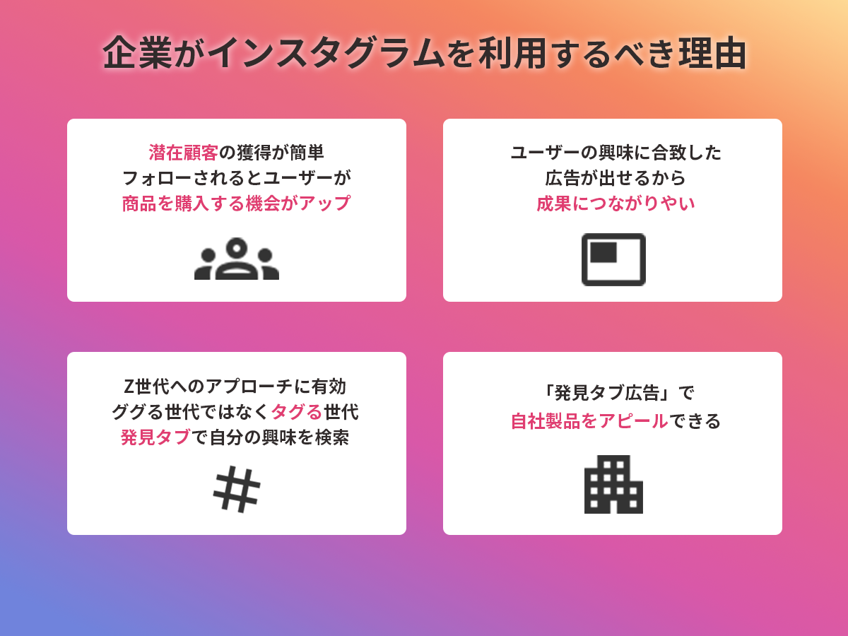 2. 内容に合わせ、Instagramカラーと発見タブを連想させるアイコンを使用しています。