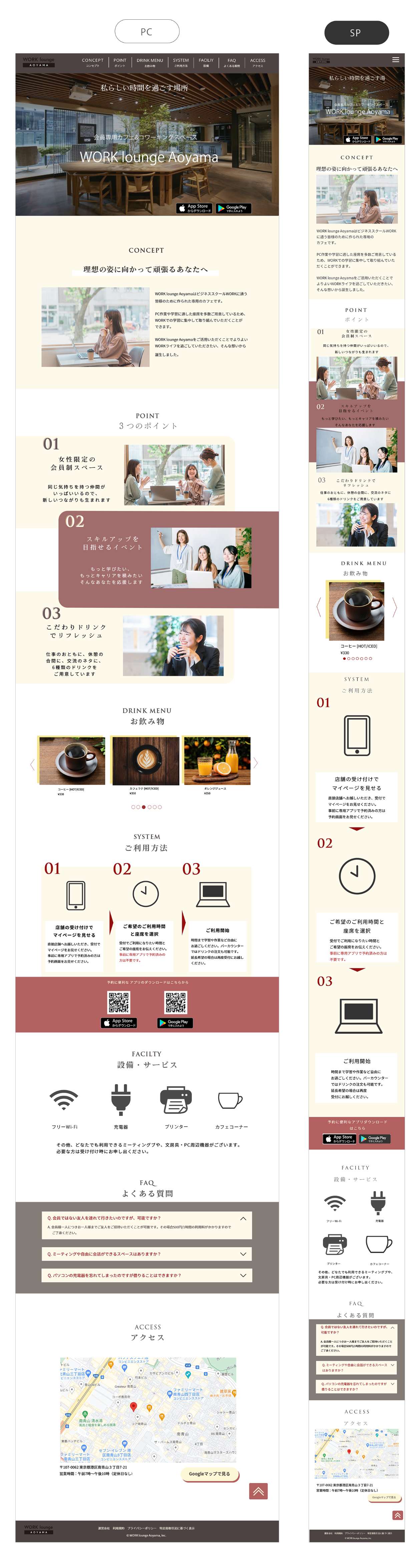 SHElikesのマルチクリエイターコースの課題で、架空の会員制コワーキングスペースのLP制作とデザインカンプを制作しました。|[制作期間:約20時間]