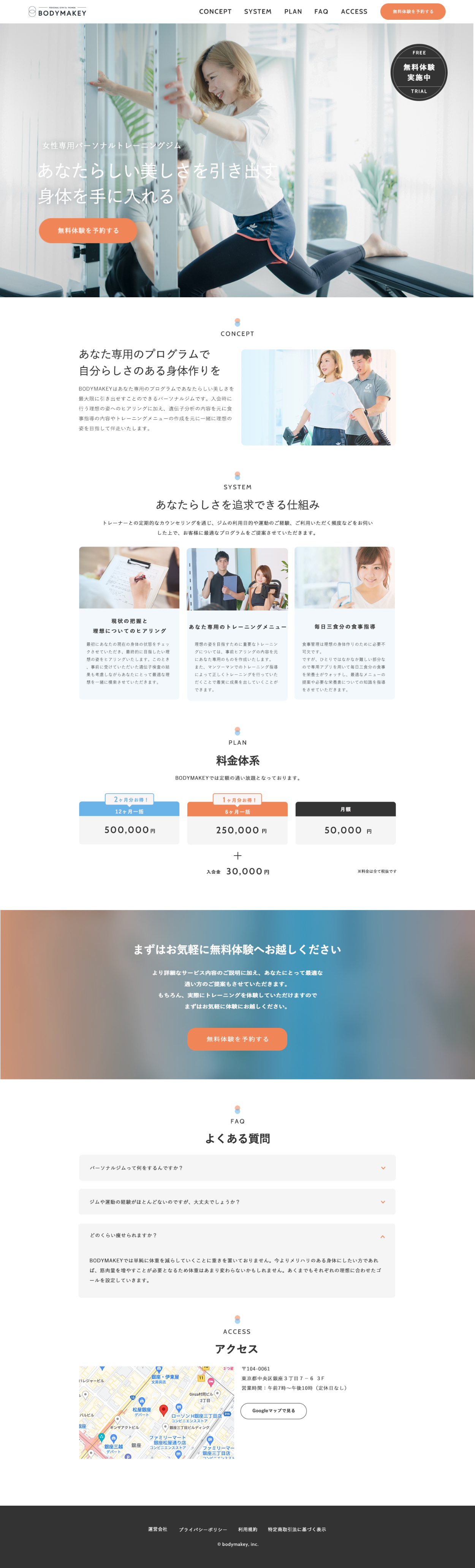 【スクール課題】女性専用パーソナルジムサイト 橋本晶子 webデザイナー OVERVIEW スクール課題にて女性専用パーソナルジムのサイト制作を行いました。 YEAR 2023 【制作について】指定されたワイヤーフレームに基づき、Photoshopにて画像等を挿入し、デザインカンプを完成させました。 WEBSITE