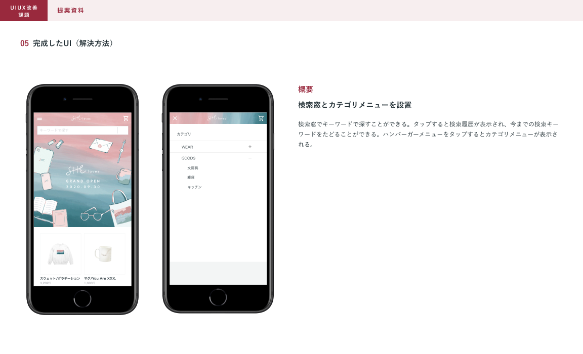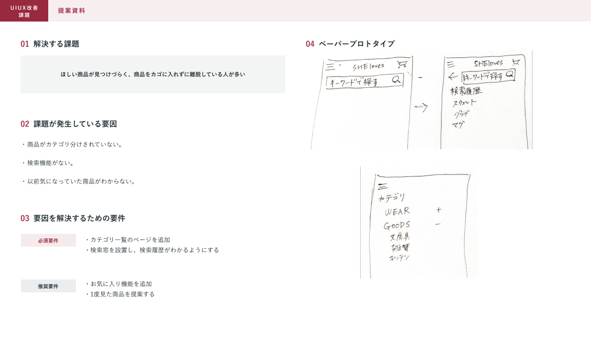 SHElikes MULTI CREATOR COURSE 6つめの課題。既存のWebサイトにおいて架空クライアントの課題の要因を考え、UIUXを提案しました。