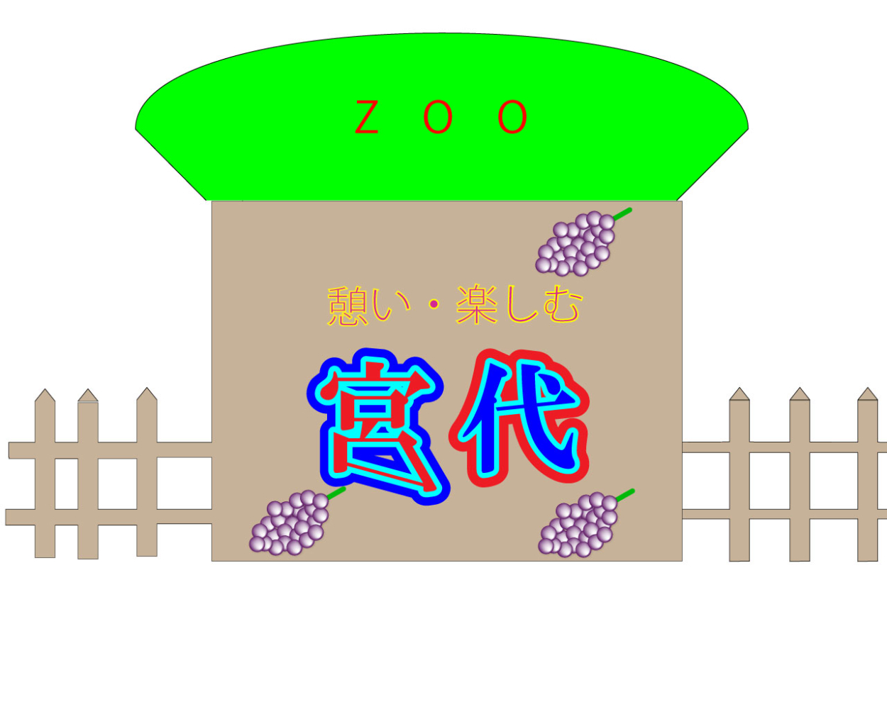 私の住んでいる、埼玉県宮代町をテーマに作成。宮代町を代表する「東武動物公園」や名産の「ぶどう」を配置。ペンツールや、多角形ツールを主に使用。ぶどうは小さな球体を複数作成し、そこにグラデーションを取り入れ、新鮮なぶどうに見えるよう工夫しました。