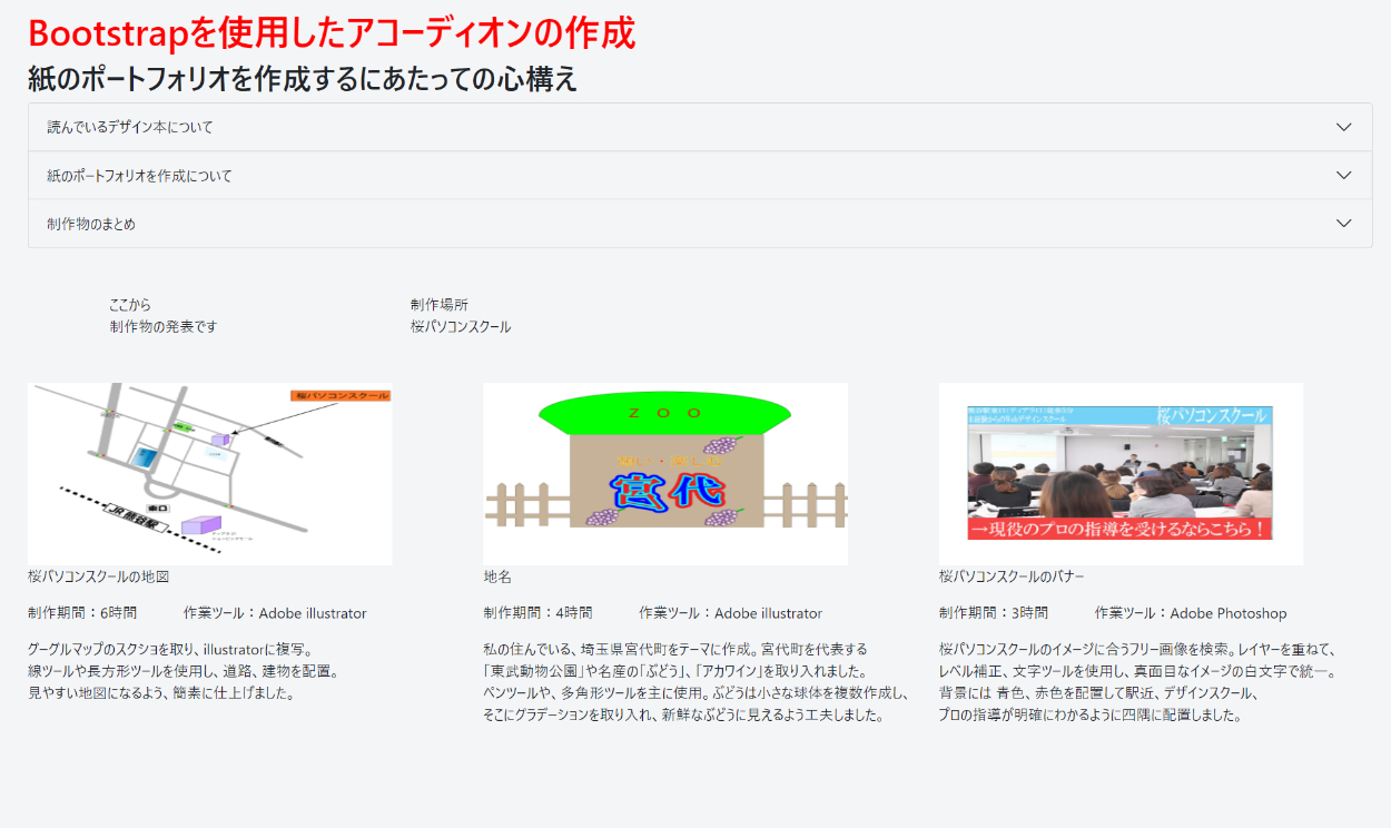 2021年9月~11月まで、職業訓練学校 桜パソコンスクールにてデザイン、HTML、CSSを受講。