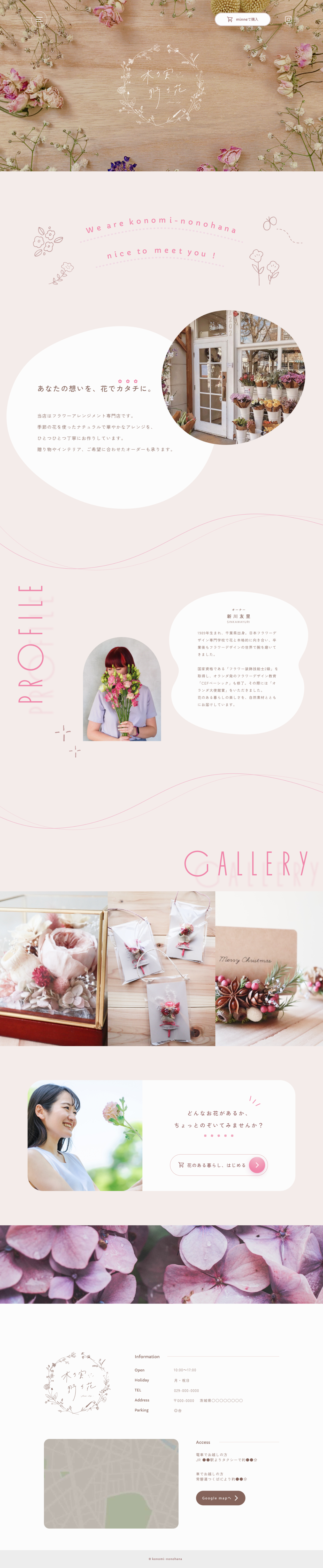 千葉県にあるフラワーアレンジメント専門店「木の実野の花」