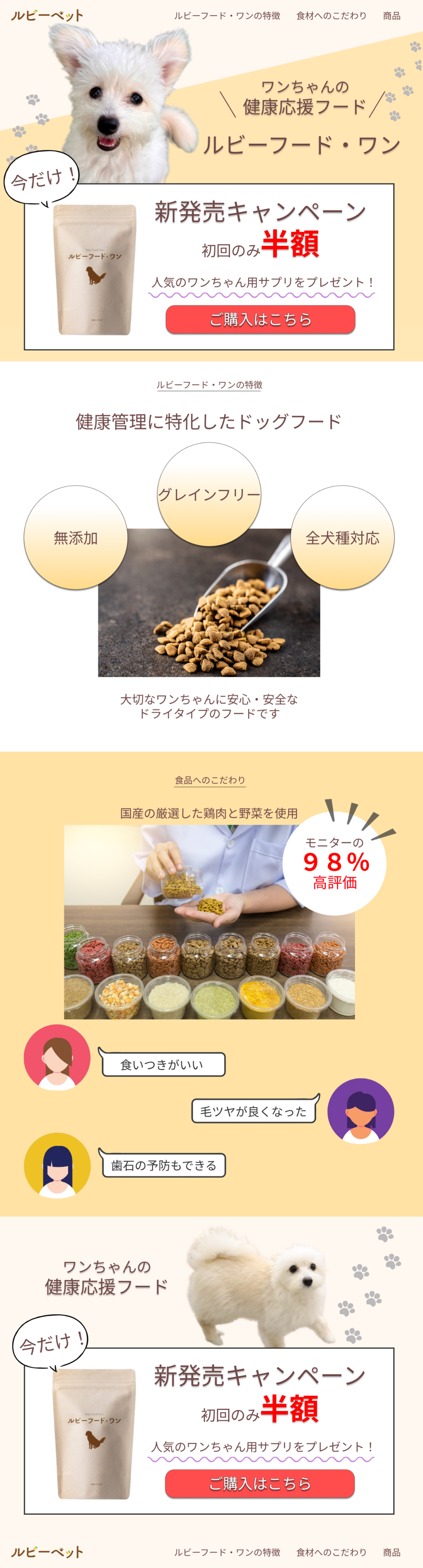 こだわって作っているフードの内容を端的にアピールし、安全さがすぐわかるようにしました。