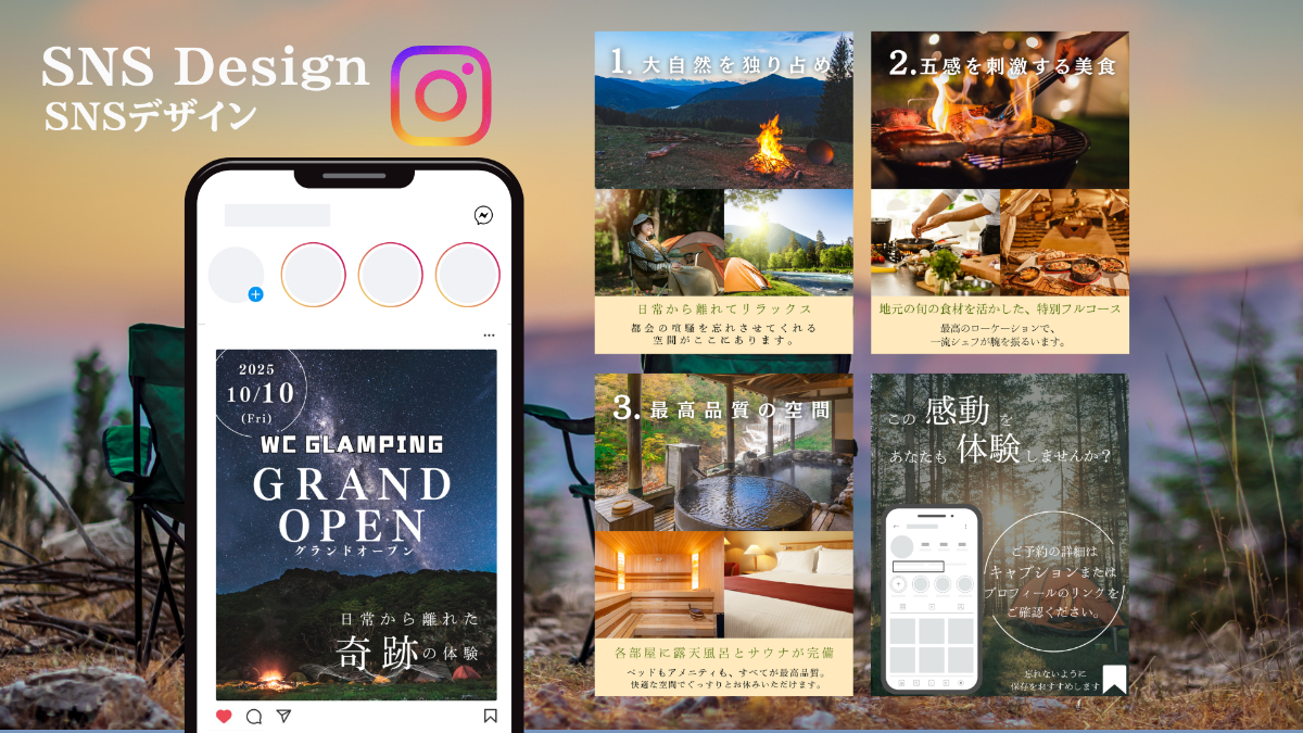 Instagram投稿|グランピング施設のグランドオープン告知(架空案件)