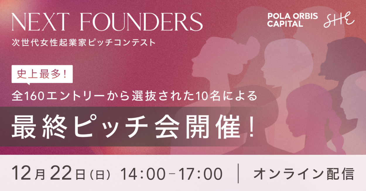 SHE株式会社様が主催する次世代女性起業家ピッチコンテスト「NEXT FOUNDERS」の最終ピッチ会開催告知バナーを制作しました。 使用ツール:Figma/制作時期:2024年11月