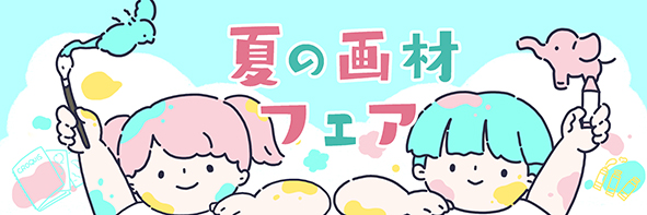 モクモクギルド第1回クエストに参加しました。画材店の「夏の画材売り上げに貢献する」フェアを想定した店頭ポップのイラストを制作しました。