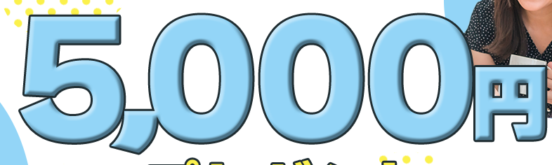 ・キャンペーンの目玉である、5,000円プレゼントの「5,000」を」目立つように記載し、バナーを見た人を引き付ける。