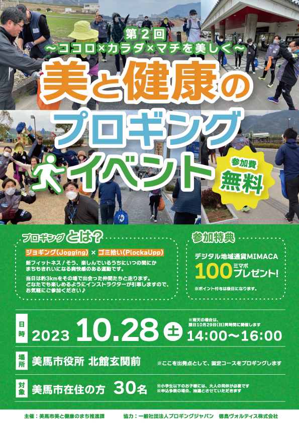 徳島県美馬市では、「100歳人生」を美しく健康に過ごせるまちづくりに取り組んでおり、その一環として(一社)プロギングジャパンが運営するプロギングというNEWフィットネスイベントの開催を企画しました。
