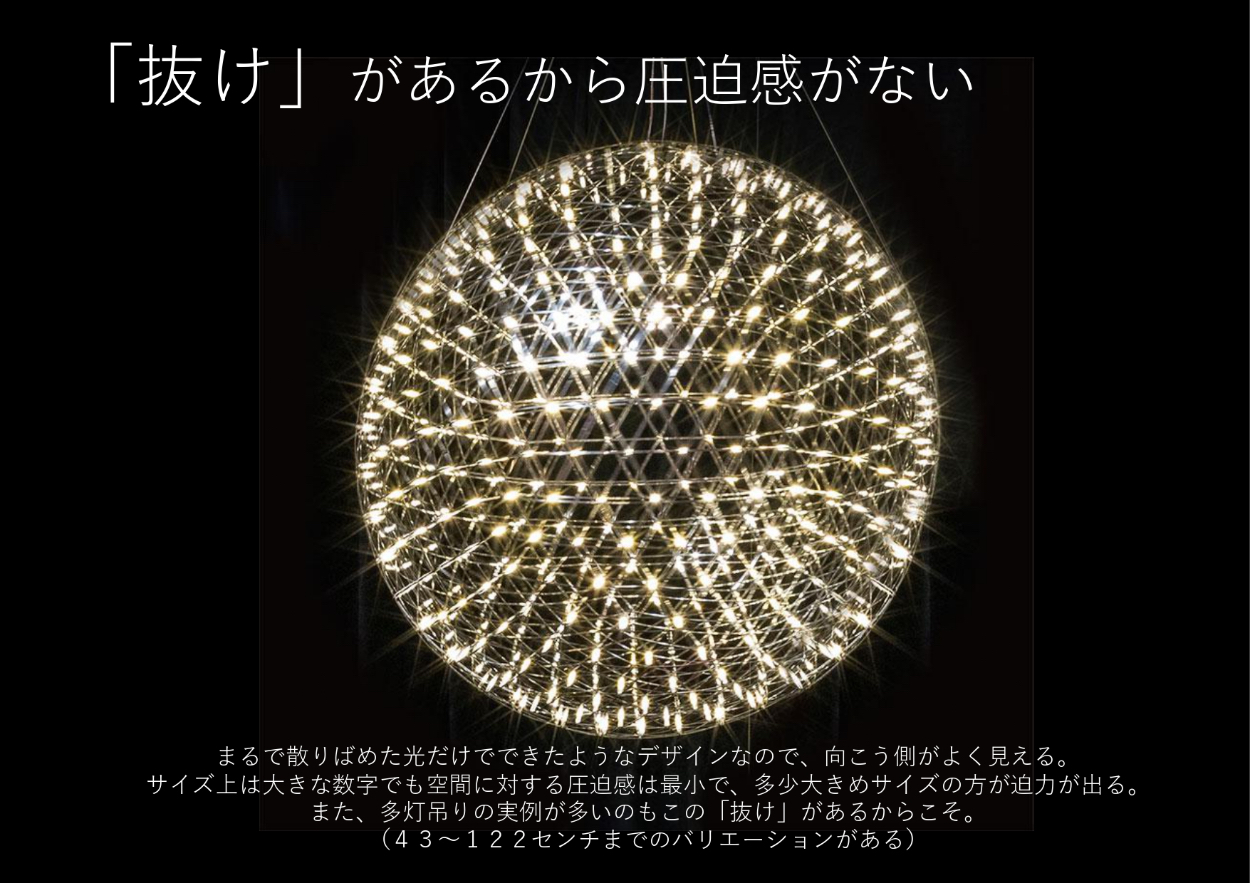 ▼実際に見て受けたイメージを強みにしました。moooi Raimond R127は、惑星のようなフォルムと中の線が見えないような抜け感を与える造りになっています。