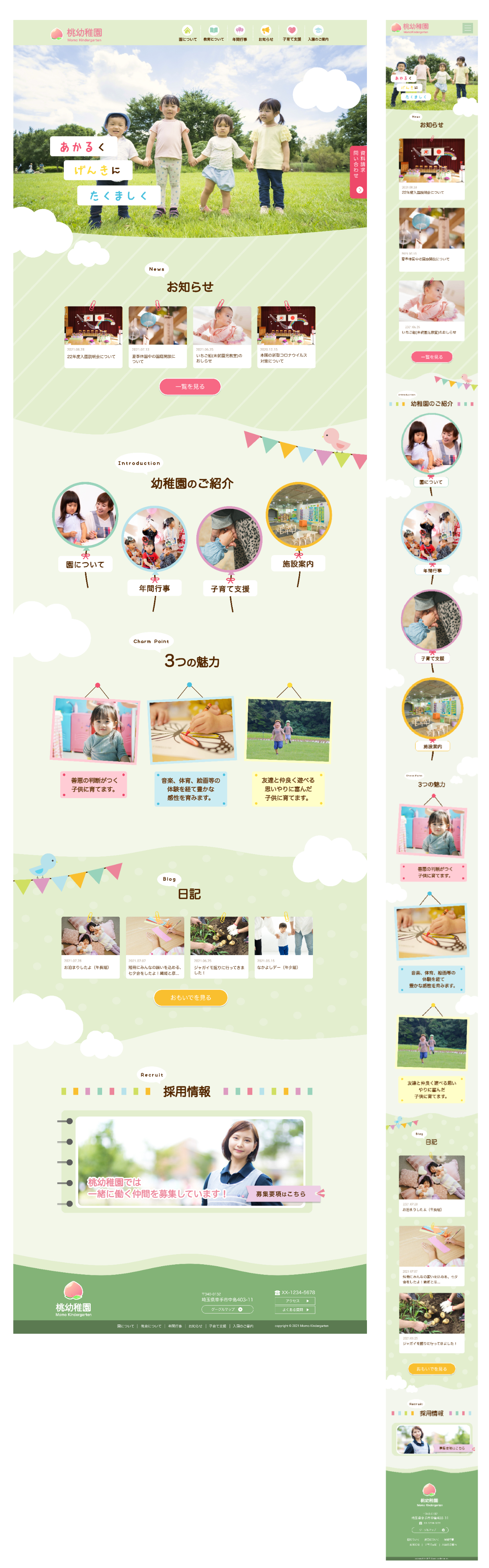 サイトに求めること▶︎ 親御さん、園児ともに楽しく見ることのできるサイト。また幼稚 園の特色を知ってもらい、来年度の入園希望者の募集を増やした い。