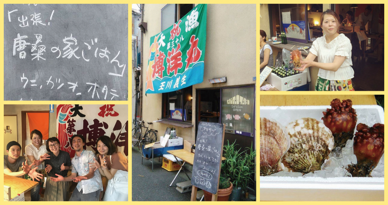 食べものを通じて、気仙沼・唐桑という場所を身近に感じてもらえたらと東京・AMALABで開催。気仙沼の商品や写真も展示。(2016年夏、2017年夏開催)