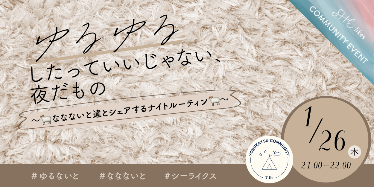 SHElikes夜活コミュニティ『ゆるゆるしたっていいじゃない、夜だもの 〜🐏ななないと達とシェアするナイトルーティン🐏〜』