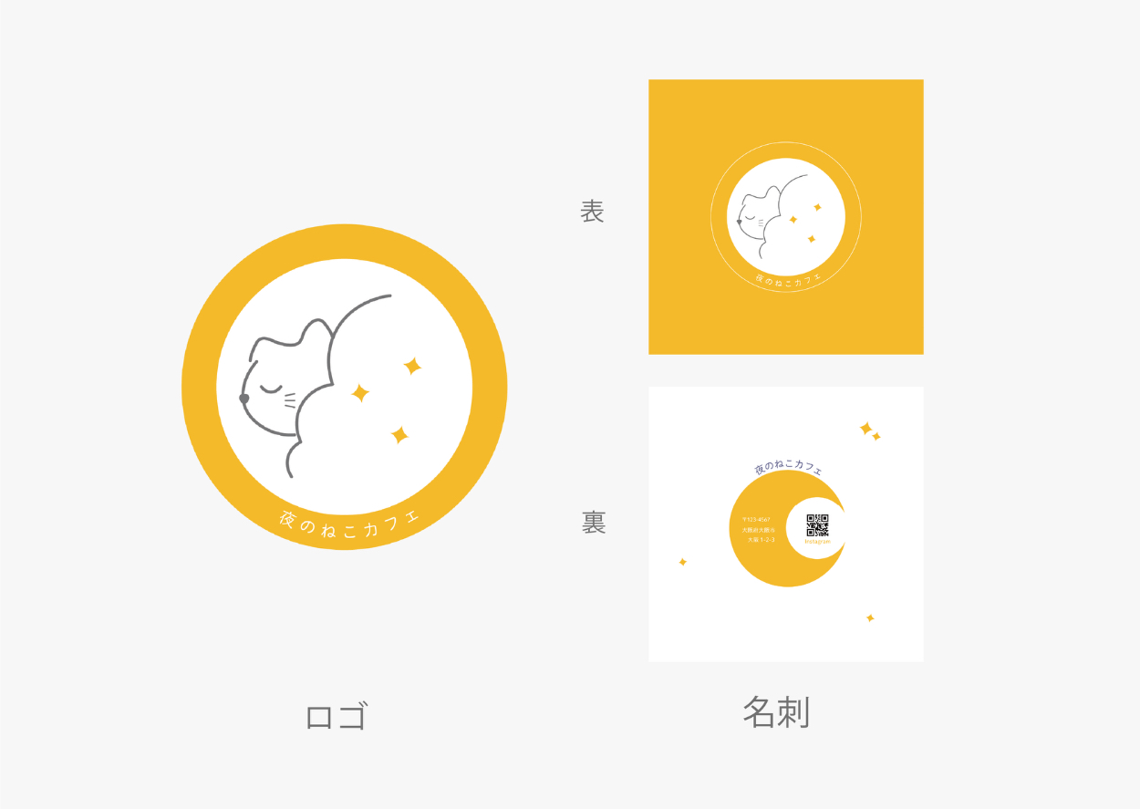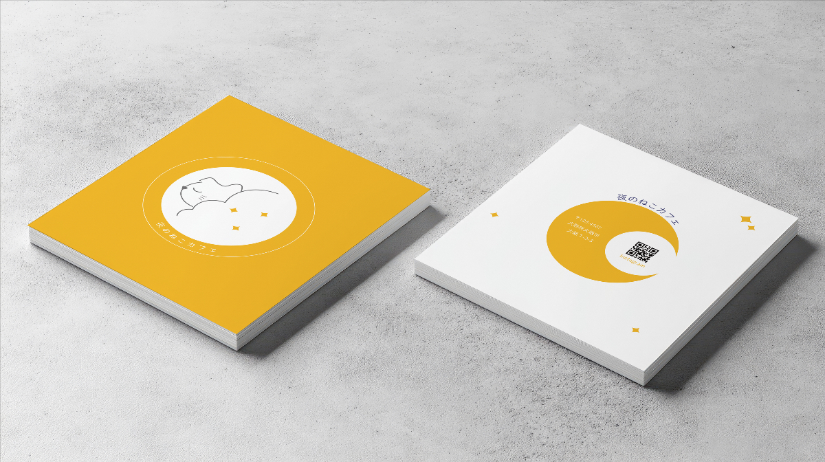 猫カフェ ロゴ・名刺デザイン(自主制作) 間柴 美羽 OVERVIEW 架空の猫カフェのロゴ・名刺を制作しました。 ◎ コンセプト・・・ 夜に営業する猫カフェ◎ ポイント月をイメージして黄色をメインに使用している満月と三日月のモチーフを取り入れる夜に眠っている猫◎ 制作時間 ・・・ 3時間◎ 使用ツール・・・ Illustrator / Photoshop