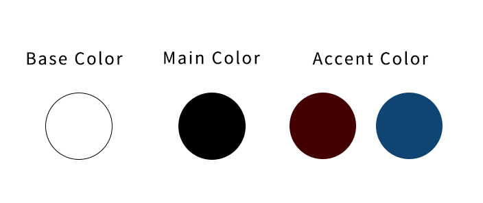 洗練されているイメージを出すために、ベースカラーに白、メインカラーに黒を使用し、上品さを出すために深い赤と青を使用しました。