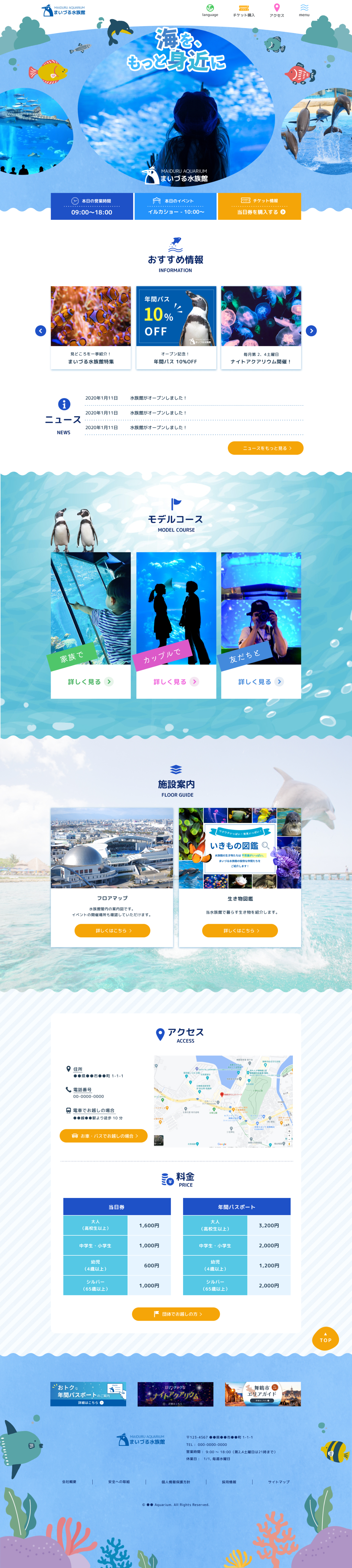 新規オープンする架空の水族館のトップページを制作しました。 [制作期間:2週間 / 使用ツール:Figma、Photoshop]